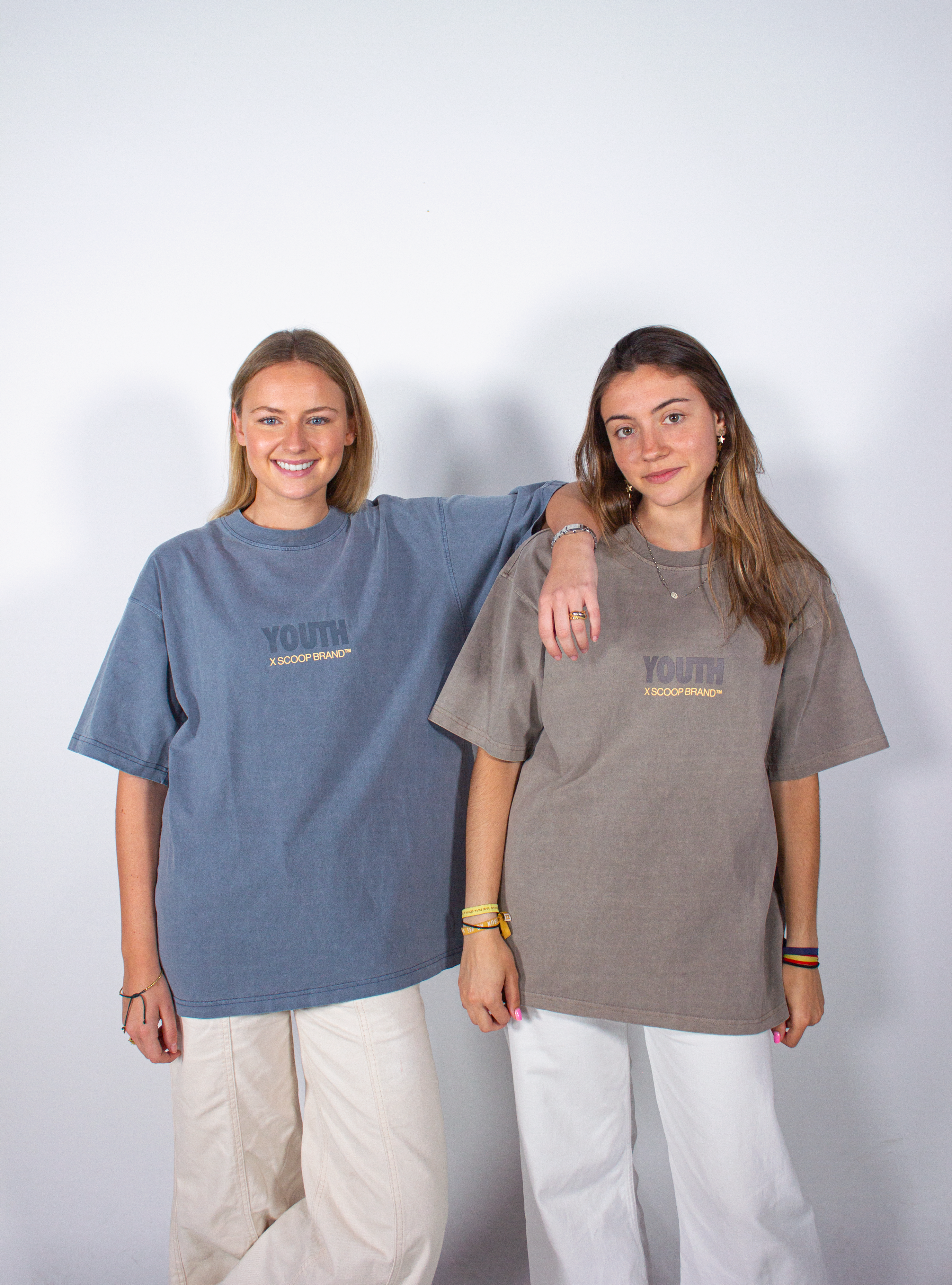 YOUTH REVOLUTION X SCOOP BRAND STONE GREY OVERSIZED TEE