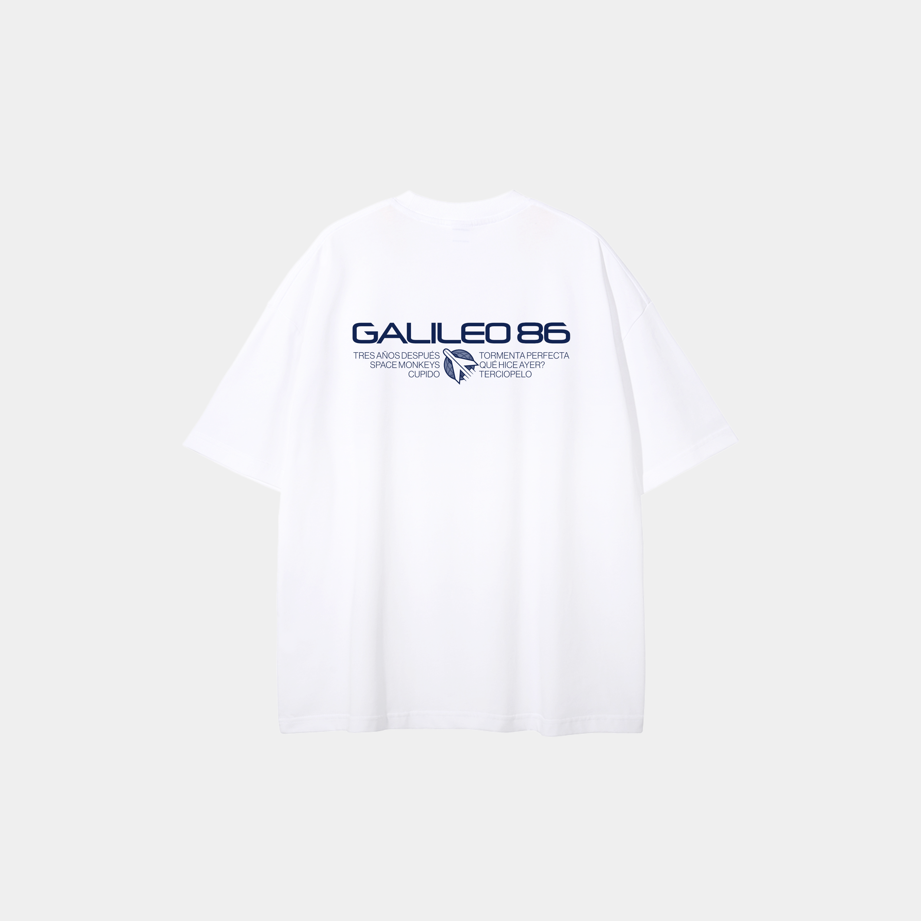 Después de hacer varios sold outs en locales míticos madrileños como Moby Dick o Aperitoche, Galileo 86 ha decidido llevar la música a otro nivel, realizando su primer trabajo de merchandising. Sin olvidar la esencia espacial del grupo, decidimos crear un modelo básico de camiseta blanca con el diseño en azul oscuro (recordando a los colores clásicos de un astronauta), usando una tipografía moderna, reestilizando el logo del grupo e incluyendo sus últimos lanzamientos.